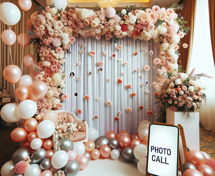 Elegancia para tu Día Especial: Captura momentos especiales en un photocall decorado con globos que reflejan tu estilo y añaden un toque de distinción a tu boda.
